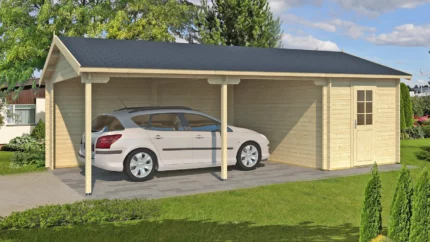 Drewniana dwustanowiskowa wiata garażowa Ohio 35 + 18,8 m2