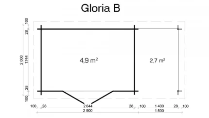 Drewniany domek ogrodowy z płaskim dachem Gloria B 4,9 + 2,7 m2