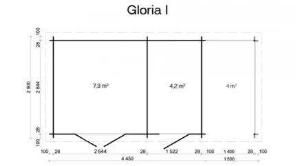 Drewniany domek ogrodowy z płaskim dachem Gloria E 7,3 + 4 m2