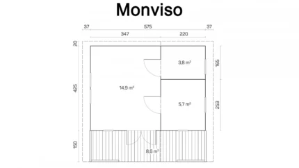 Drewniany domek letniskowy Monviso 24,4 + 8,6 m2