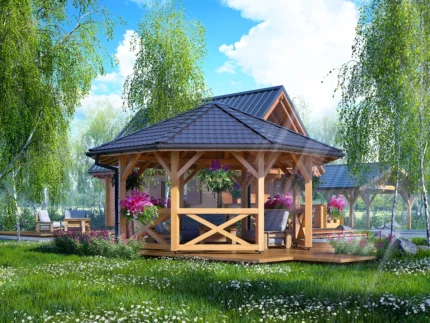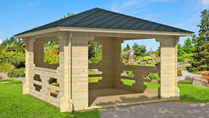 Wiata została wykonane z wysokiej klasy drewna
