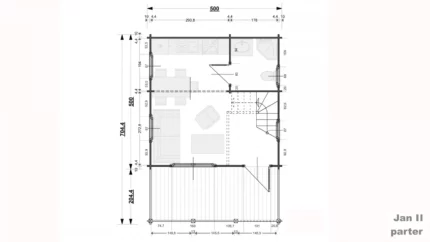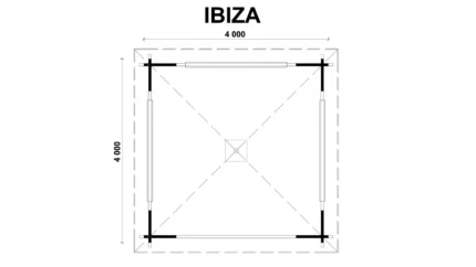 Głębokość i szerokość wiaty jest równa 640×711 cm, a jej wysokość w szczycie wynosi 348 cm. Konstrukcja jest zwieńczona dwuspadowym dachem o nachyleniu 20 stopni, który jest podparty na sześciu słupach o profilu 140×140 mm i wysokości 210 cm. Wysokość i szerokość wiaty w świetle wjazdu to 198×572 cm, co umożliwi swobodne parkowanie niemal każdego auta osobowego.