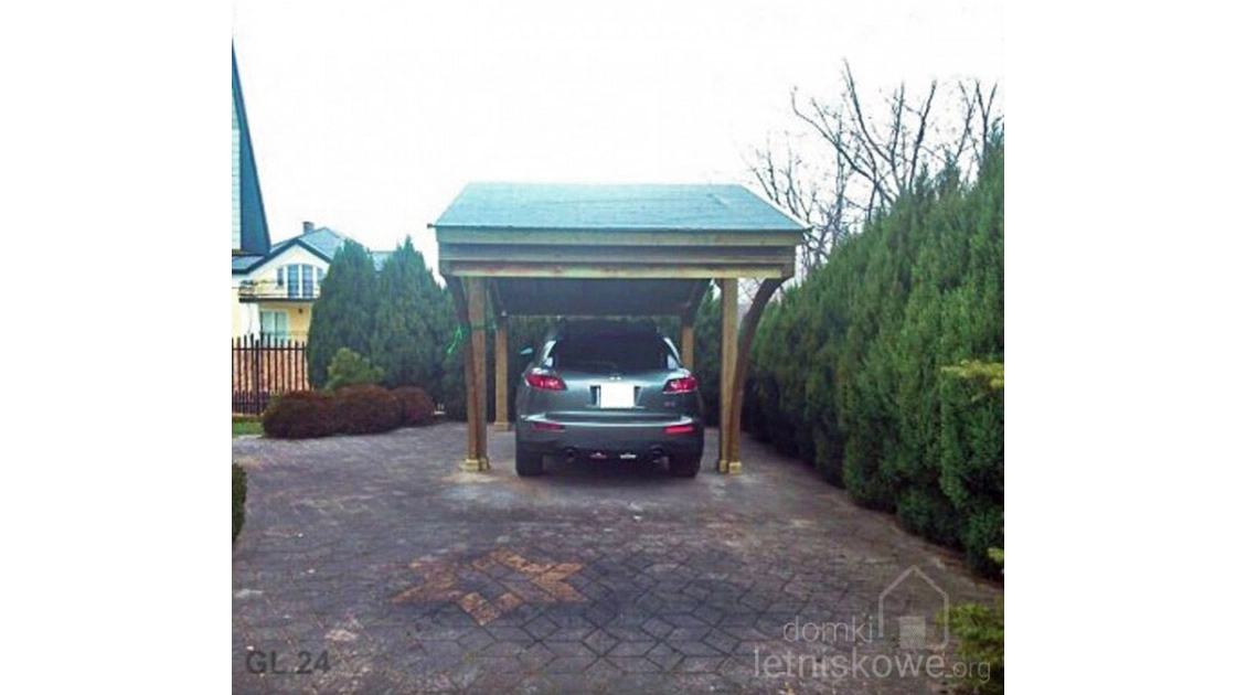 Revelatio I to wykonana z drewna jednostanowiskowa wiata garażowa. Dzięki powierzchni zabudowy wiatę Revelatio I można wybudować bez pozwolenia budowlanego.