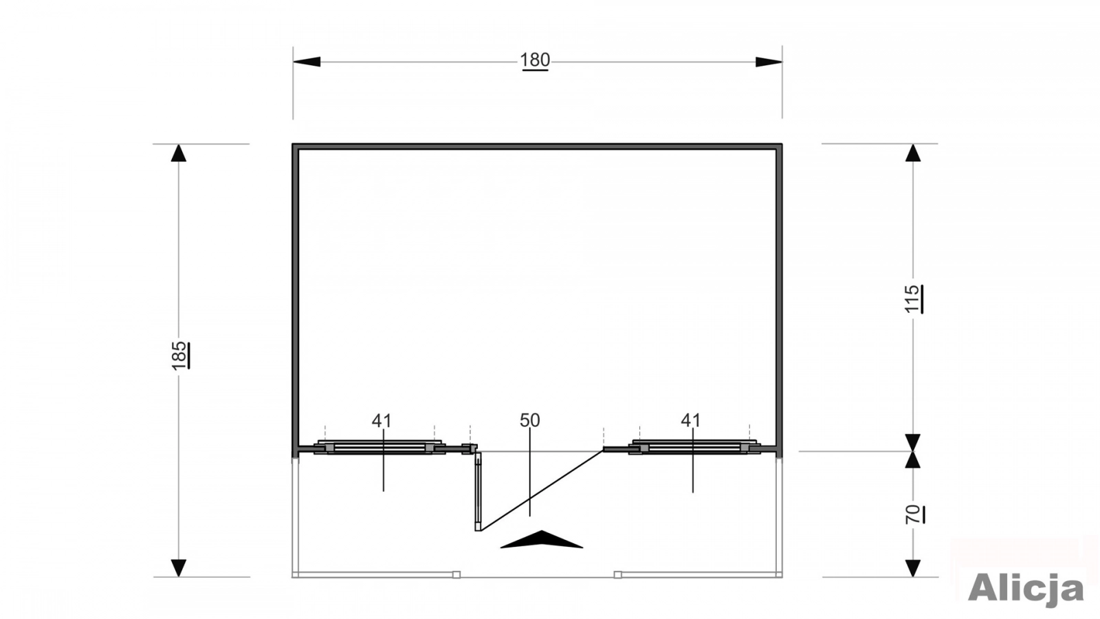 Wymiar domku razem z tarasem i elementami wystającymi to 180×180 cm, nie wliczając tarasu 180×112 cm. Wysokość Alicji w szczycie to 169 cm, a ściany są wysokie na 117 cm. Alicja została wykonana w całości ze świerku skandynawskiego. Ściany, podłoga i dach domku mają 16 milimetrów grubości. Dach domku jest dwuspadowy, symetryczny, ma 4,6 m2 powierzchni i 29-stopniowe nachylenie. Alicja ma budowę modułową, a wysoce dopasowane elementy montażowe sprawiają, że domek bardzo łatwo zmontować samodzielnie.