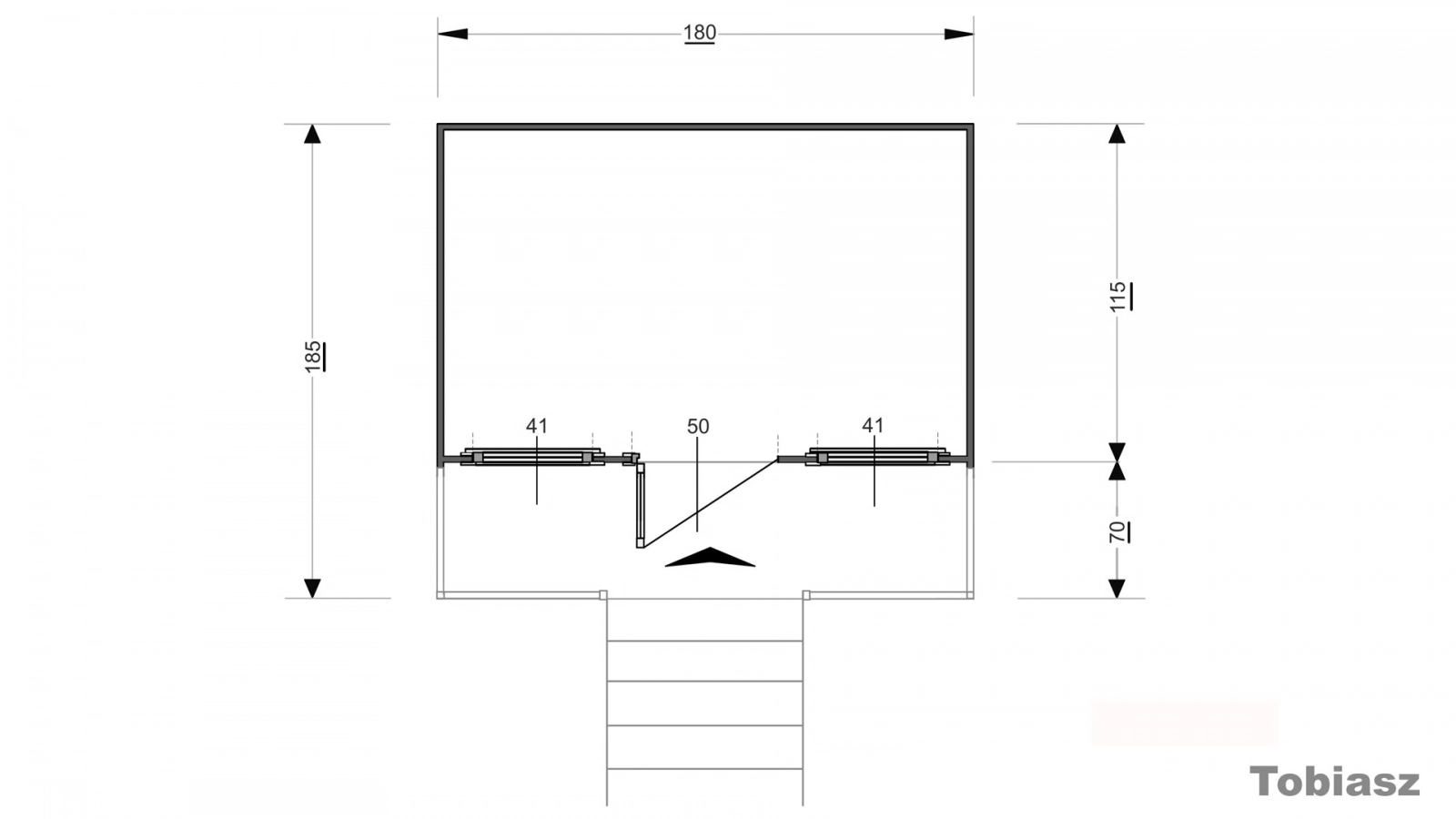 Długość oraz szerokość domku razem z tarasem jest równa 180×190 cm, nie wliczając tarasu 180×122 cm. Domek w szczycie wliczając podwyższenie mierzy 287 cm. Bez podwyższenia wymiar w szczycie to 169 cm, a wysokość ścian jest równa 117 cm. Domek został zwieńczony dwuspadowym dachem o powierzchni 4,6 m2, nachyleniu 29o oraz 70 cm wypuście z przodu budynku. Dach, ściany oraz podłoga zostały wykonane z grubej na 16 mm deski świerkowej. Dopasowane elementy konstrukcyjne umożliwiają bezproblemowy montaż przy użyciu podstawowych narzędzi.