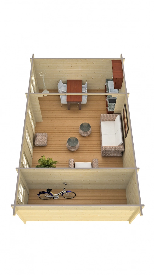 Drewniany domek letniskowy Ania 20 + 7 m2
