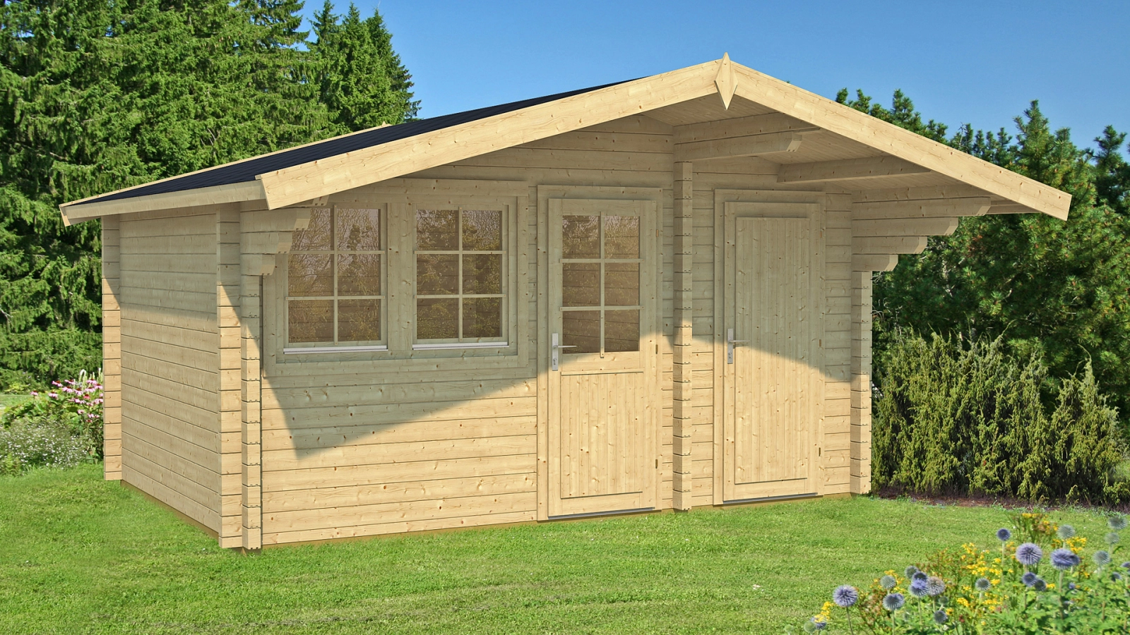 Drewniany domek letniskowy Pedro A sprawdzi się przy domu jednorodzinnym jako domek dla gości lub jako niewielki domek letniskowy. Powierzchnia zabudowy umożliwi budowę bez pozwolenia budowlanego.