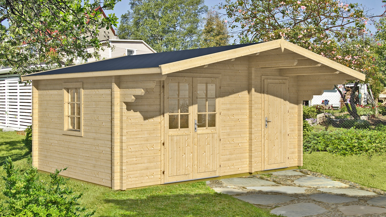 Drewniany domek Pedro D sprawdzi się jako niewielki domek letniskowy lub jako domek na ROD. Dzięki powierzchni zabudowy nieprzekraczającej 16 m2, konstrukcję z powodzeniem można wybudować bez pozwolenia budowlanego.
