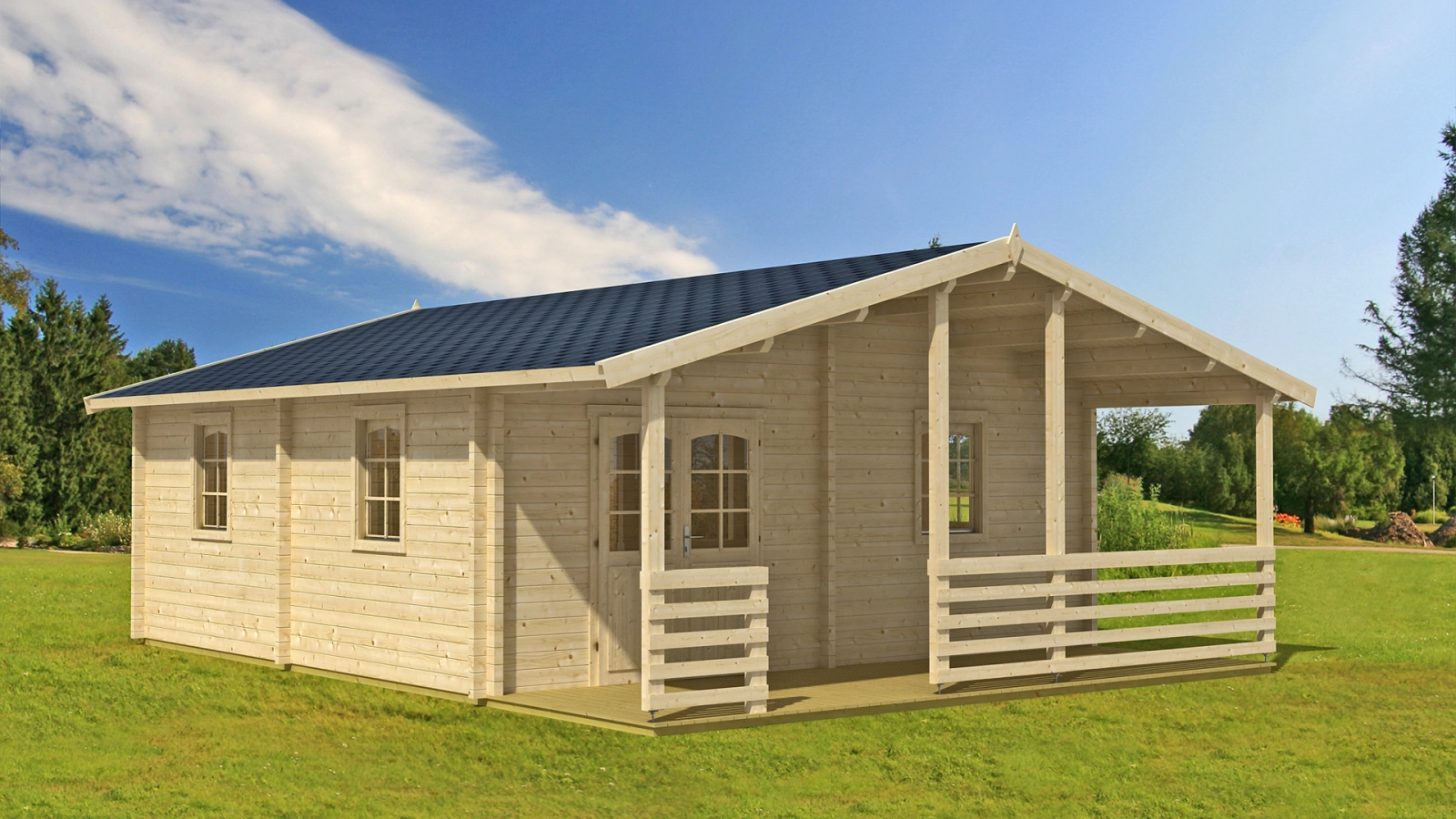 Petra to zbudowany na planie kwadratu średniej wielkości domek letniskowy z tarasem. Równa 36 m2 powierzchnia zabudowy domku sprawia, że można go wybudować tylko z pozwoleniem na budowę.