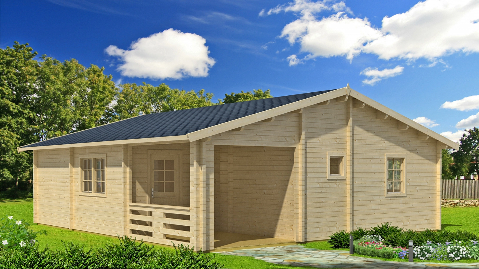 Drewniany, cztero pomieszczeniowy domek Riga z tarasem będzie bardzo dobrze pełnił rolę domku letniskowego. Sześćdziesiąt metrów kwadratowych powierzchni zabudowy sprawia, że do budowy niezbędne jest pozwolenie.