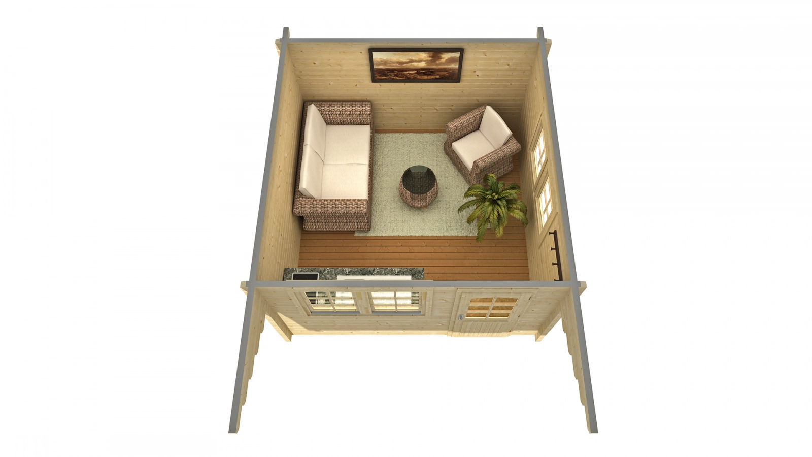 • Sprawdzi się jako niewielki domek letniskowy lub jako domek dla gości