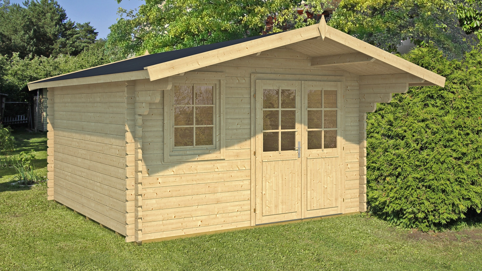 Drewniany domek na planie prostokąta Mari A będzie odpowiedni jako większy domek narzędziowy lub domek na ROD. Powierzchnia zabudowy Mari A dopuszcza budowę bez pozwolenia.