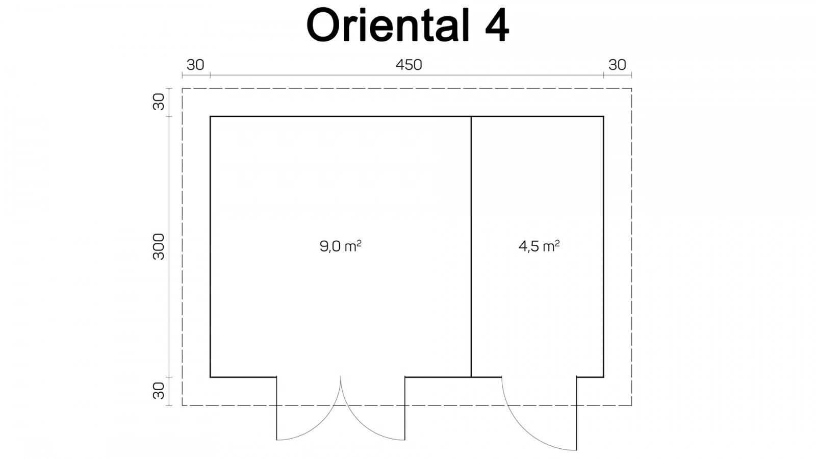 Oriental 4 jest zbudowany z dwóch pomieszczeń z osobnymi wejściami od zewnątrz budynku. Pierwsze pomieszczenie o powierzchni 4,5 m2 posiada jednoskrzydłowe przeszklone drzwi. Pomieszczenie jest wąskie i podłużne, dzięki czemu świetnie spełni rolę schowka na rowery. Do drugiego pomieszczenia prowadzą dwuskrzydłowe przeszklone drzwi, przez które z łatwością będzie można przenosić duże przedmioty. Drugie pomieszczenie ma 9 m2 powierzchni i z powodzeniem można w nim przechowywać meble ogrodowe i inne narzędzia. Do domku oferujemy cały pakiet usług dodatkowych razem z pokryciem dachu papą czy malowaniem.