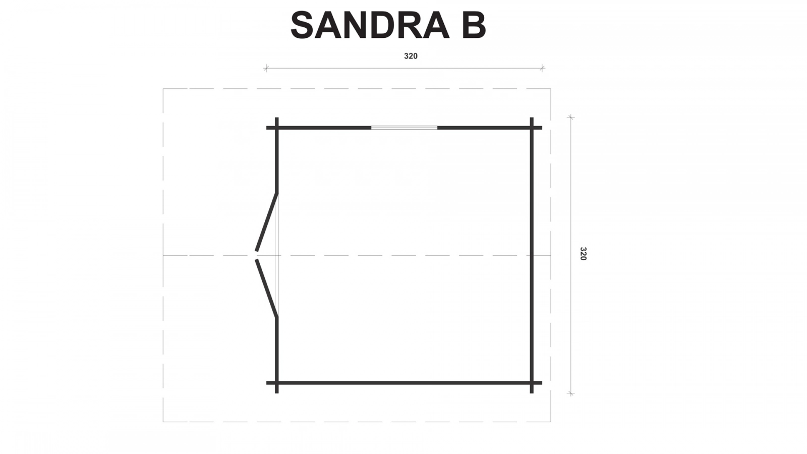 Całkowita długość i szerokość domku razem z wypustami wynosi 320×320 cm. Bez wypustów domek mierzy 300×300 cm dając 9 m2 powierzchni zabudowy. Symetryczny, dwuspadowy dach domku zwieńcza konstrukcję nadając jej charakteru. Ściany Sandry B są zbudowane z 40 mm litego bala świerkowego, natomiast dach i podłoga z 18 mm deski. Dzięki użytym materiałom i precyzyjnej obróbce drewna, Sandra B cechuje się wysoką wytrzymałością.