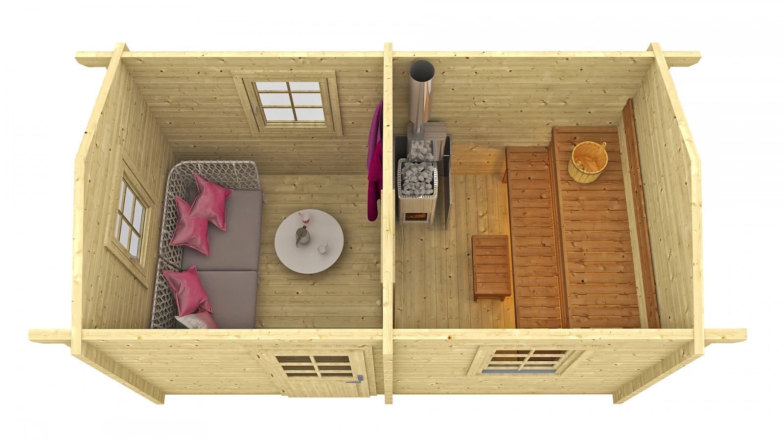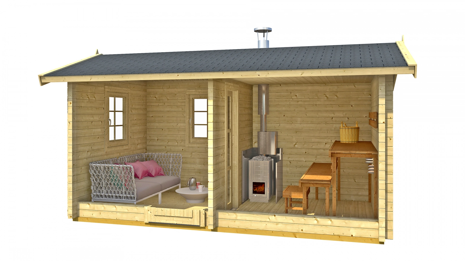 Drewniany domek ogrodowy – sauna Tommi 23,1 m2